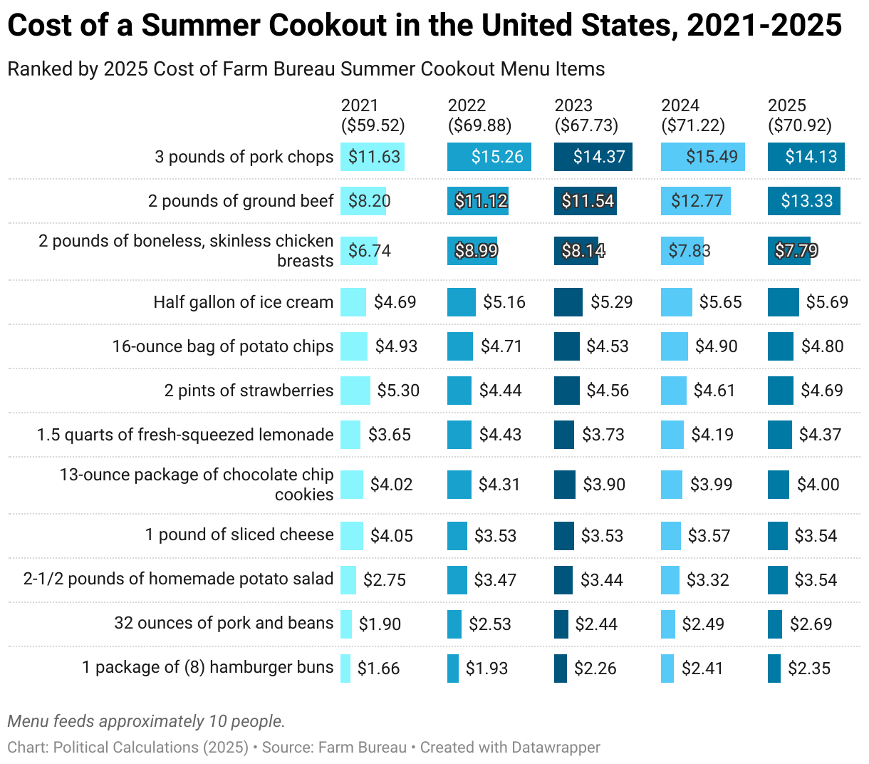 Ranked by 2025 Cost of Farm Bureau Summer Cookout Menu Items