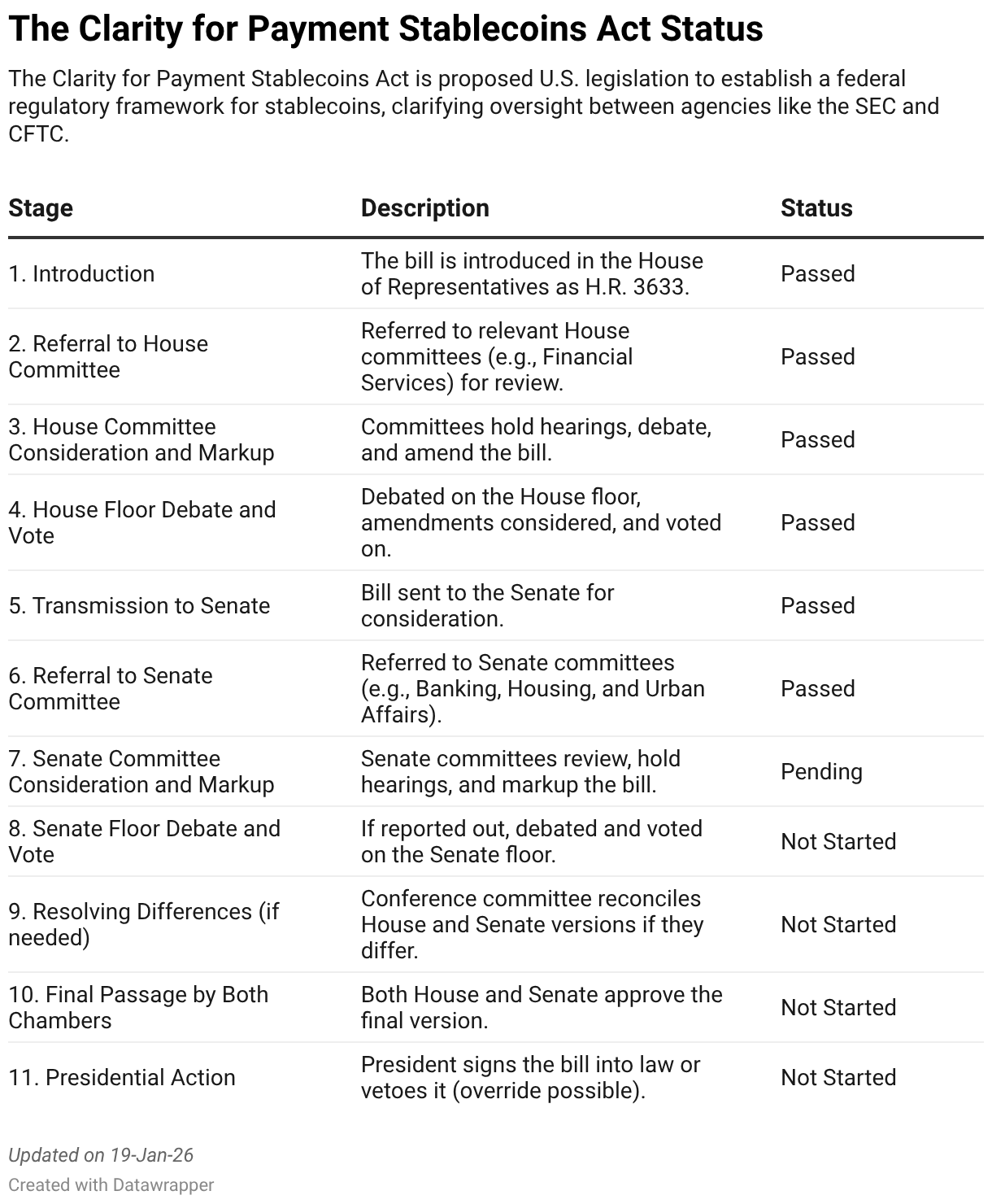 The Clarity for Payment Stablecoins Act is proposed U.S. legislation to establish a federal regulatory framework for stablecoins, clarifying oversight between agencies like the SEC and CFTC.