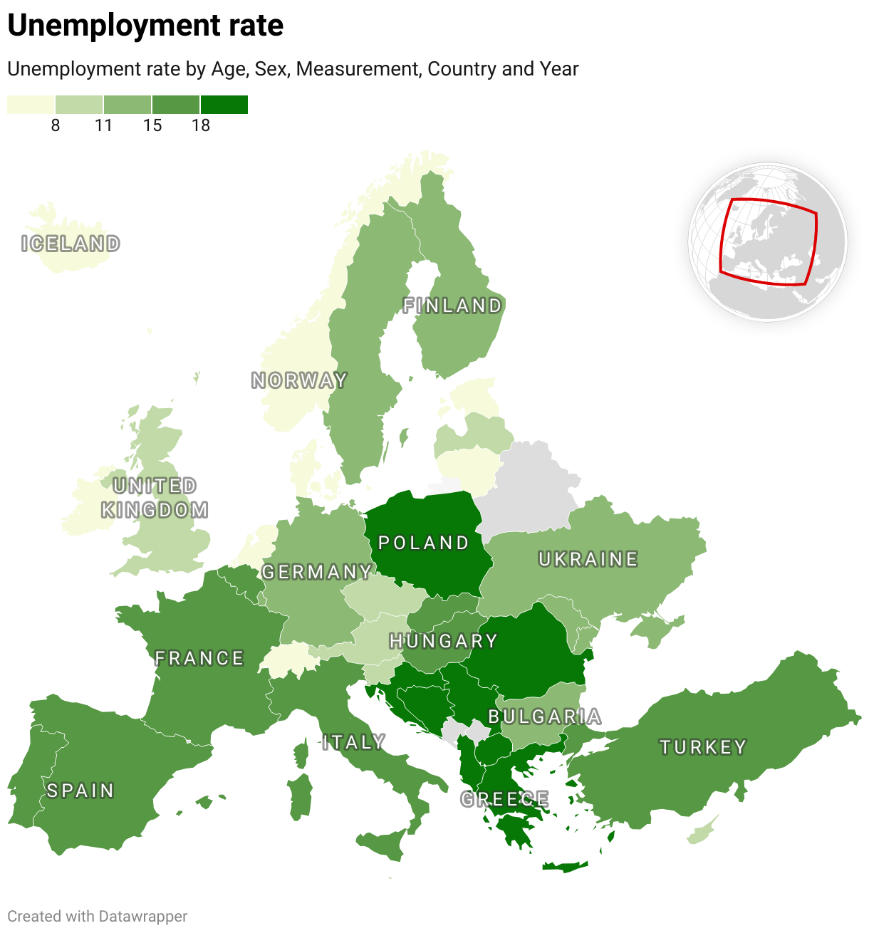 Unemployment rate by Age, Sex, Measurement, Country and Year