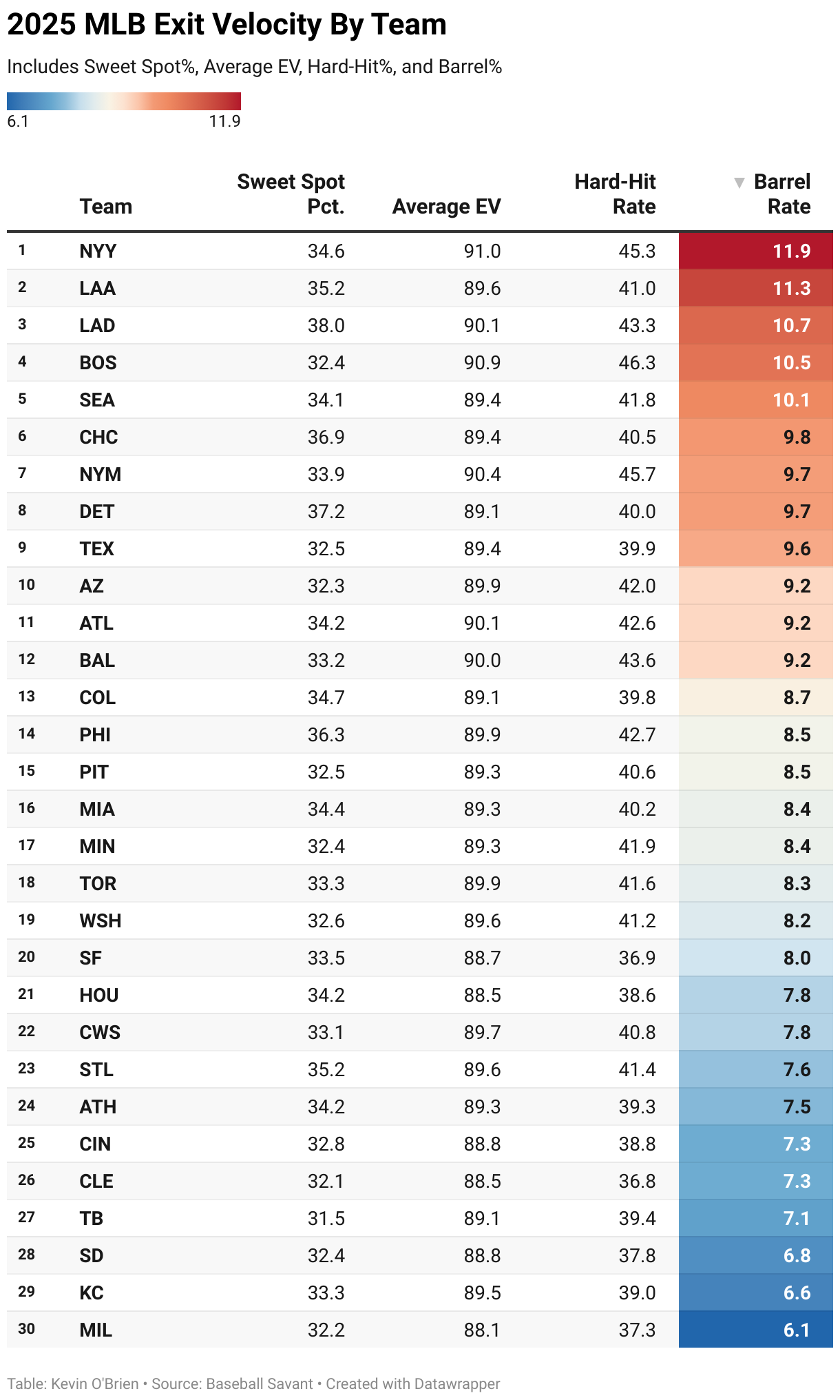 Includes Sweet Spot%, Average EV, Hard-Hit%, and Barrel%