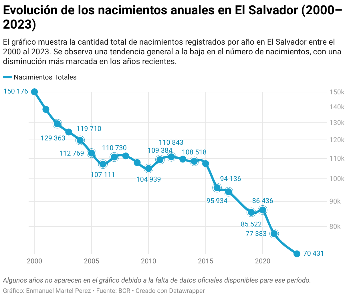 Evolución de los nacimientos anuales en El Salvador (2000–2023)