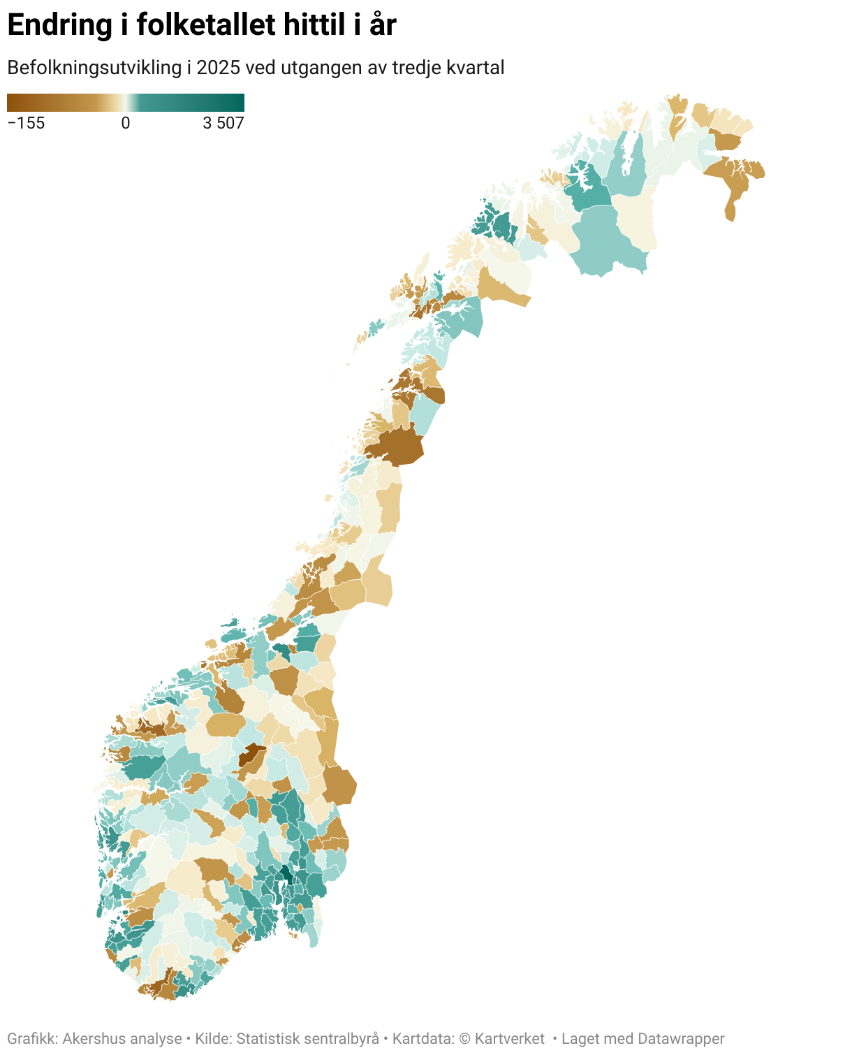 Befolkningsutvikling i 2025 ved utgangen av tredje kvartal