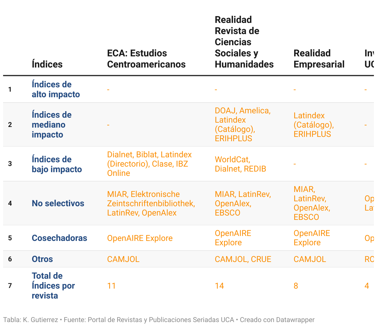 Gráfico: K. GutierrezFuente: Portal de Revistas y Publicaciones Seriadas UCADescargar los datosDescargar la imagenCreado con Datawrapper