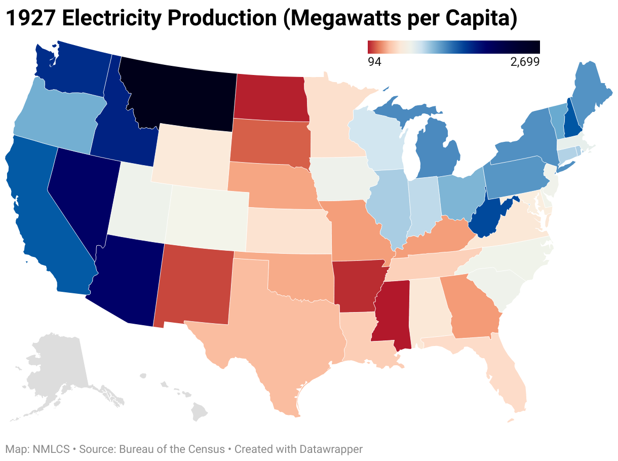 1927 Electricity Production (Megawatts per Capita)